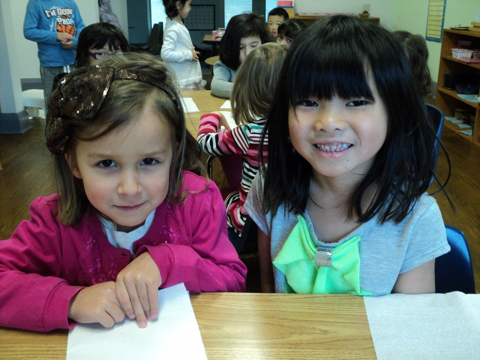 I asked many of the children why they were so eager to come back to school. The most common answer was that they missed their friends and their teachers. One little four year old girl told me that she couldn't wait to come back because she wanted to hug me. That was so sweet, and yes, the teachers got lots of hugs this week. I was pleasantly surprised by how many mentioned that they wanted to come back to finish their printing book or math book or to take their reading book bag home again. The children have been working very productively this week.